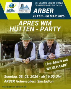 Rahmenprogramm Freitag, 27. Februar 202618:00 Uhr – Eröffnungsfeier in Bodenmais mit Partyband Saxndi Sonntag, 08. März 2026 16:00 Uhr – Apres WM – Party im Hohenzollern Skistadion mit Live-Musik Wieslhaare