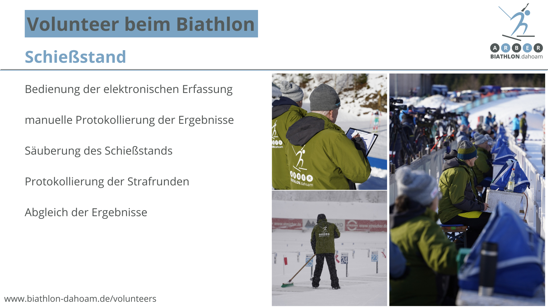 Auch in den nächsten Jahren ist das Hohenzollern Skistadion am Großen Arbersee wieder Austragungsort großer Biathlon-Veranstaltungen – und damit Mekka einer internationalen Skijäger-Elite. Als freiwilliger Helfer bist du bei uns mittendrin!